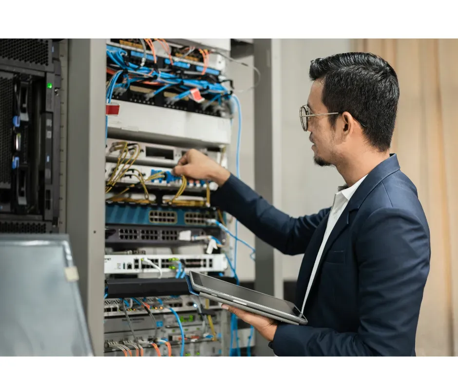 Nous réalisons le câblage RJ45 ou Fibre de vos locaux, pour garantir une connexion fiable et performante à tous vos équipements informatiques et réseaux.